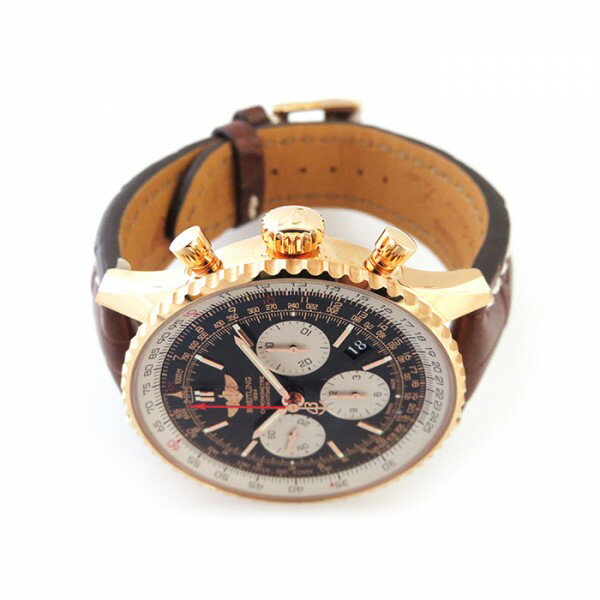 ブランドブライトリング商品名ナビタイマー01 型番R022B49WBA文字盤ブラック素材ピンクゴールドサイズ43mm ムーブメント自動巻き機能カレンダー クロノグラフ防水日常生活防水タイプメンズ付属品国際保証書 純正ボックス商品状態[ 新品 ]店頭展示品。